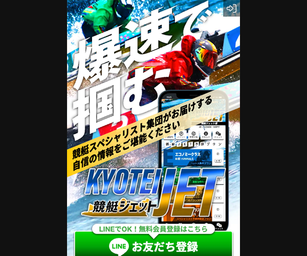 競艇予想の新時代、それが競艇JET!全国24会場からの情報を基に、精緻な予想を毎日提供。簡単なLINE登録で毎日2回の無料予想をゲットしよう。効率と的中率の両方を追求した競艇の楽しさをJETで体験。更に専属サポートであなたの競艇ライフをフルサポート。詳細は競艇JETでチェック!